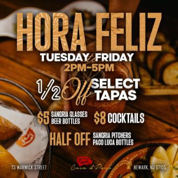 73 Warwick Street Newark, NJ 07105 862.343.6300 Tuesday-Thursday 12 PM–11 PM Friday-Saturday 12 PM-12AM Sunday 12 PM–10 PM Mondays - Closed Kitchen Closes 10PM (11 PM Friday & Saturday)